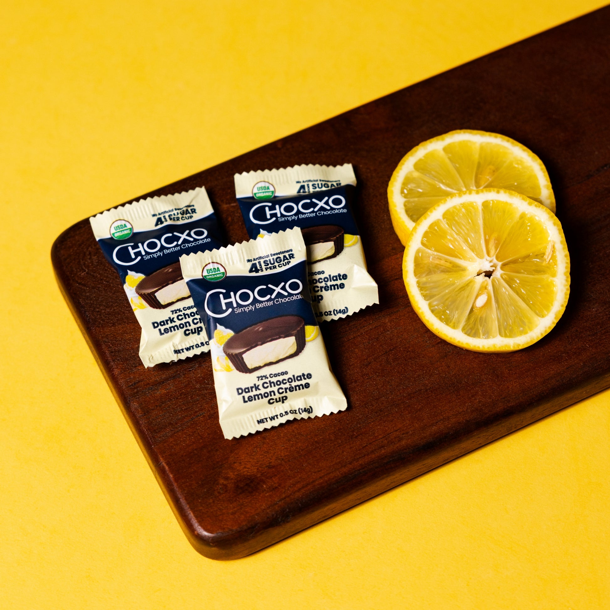 A rich 72% dark chocolate shell is filled with a creamy lemon-infused white chocolate center for a unique, refreshing indulgence. The sweet brightness of the center perfectly balances the richness of the dark chocolate shell for a lovely spring-inspired delight! Our chocolatier's recipe delivers true indulgence with a fresh taste for the season for only 4 grams of sugar per cup.