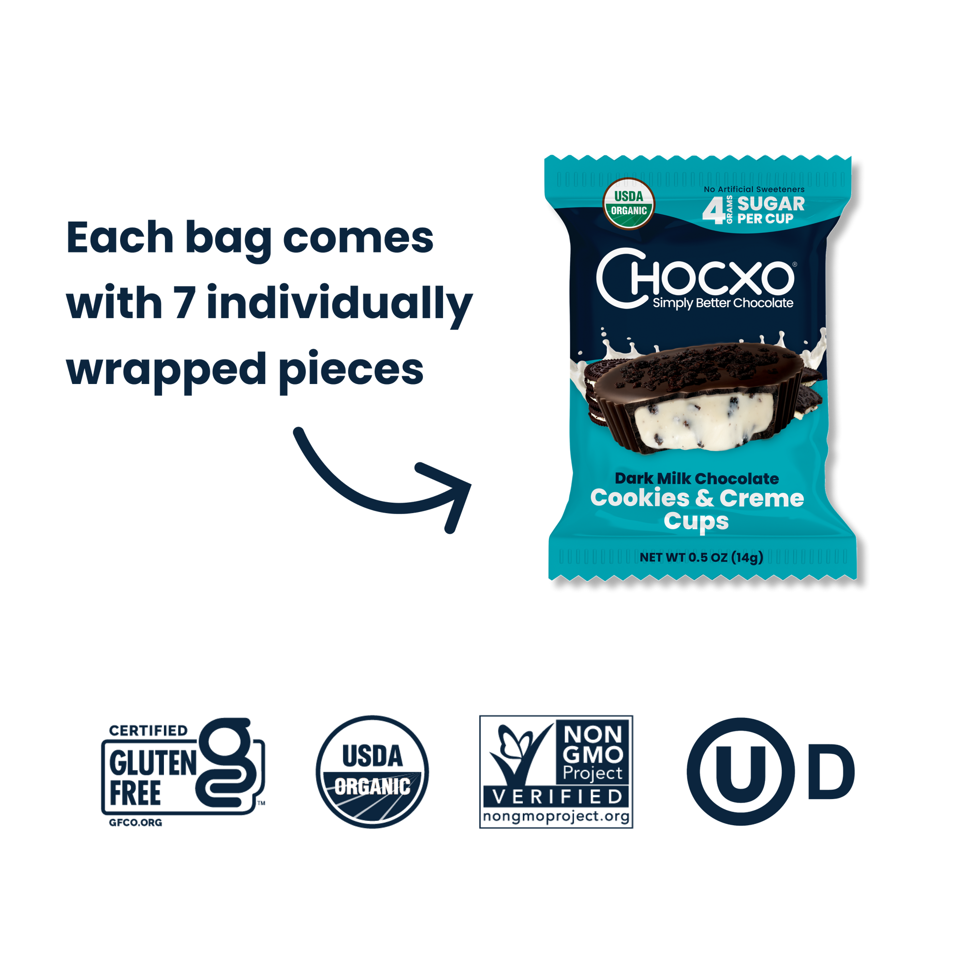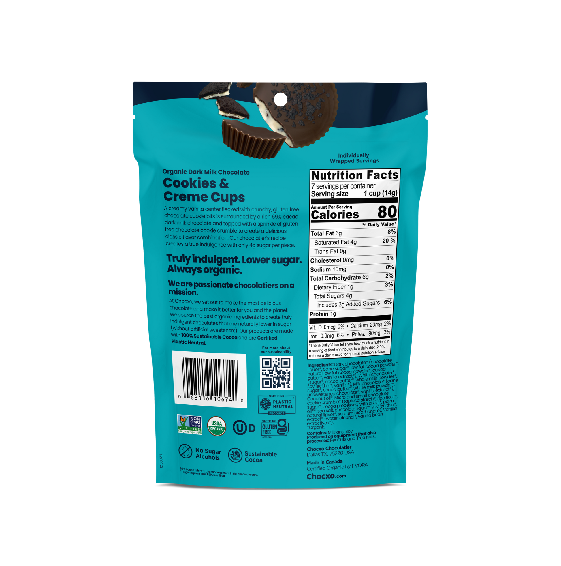More About Dark Milk Chocolate Cookies & Creme Cups